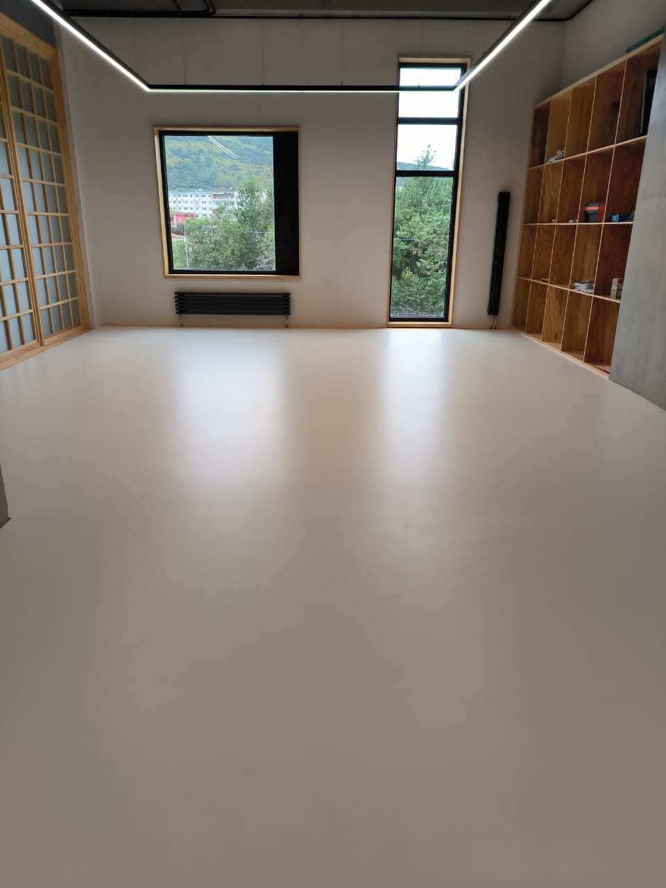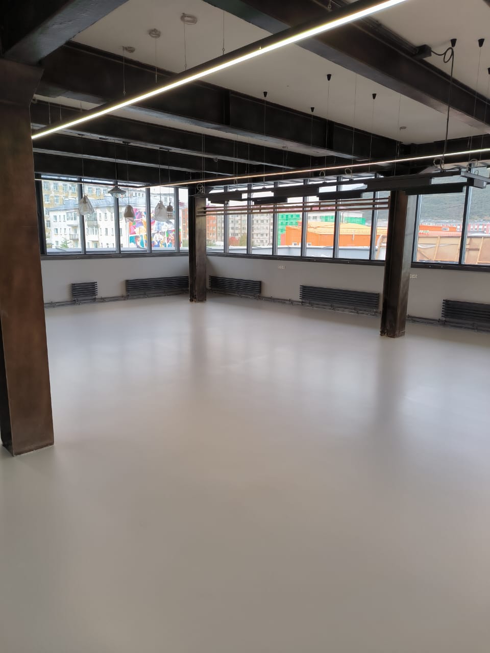 Жёстко-эластичный безыскровый полиуретановый наливной пол. Устойчив к ударным нагрузкам,